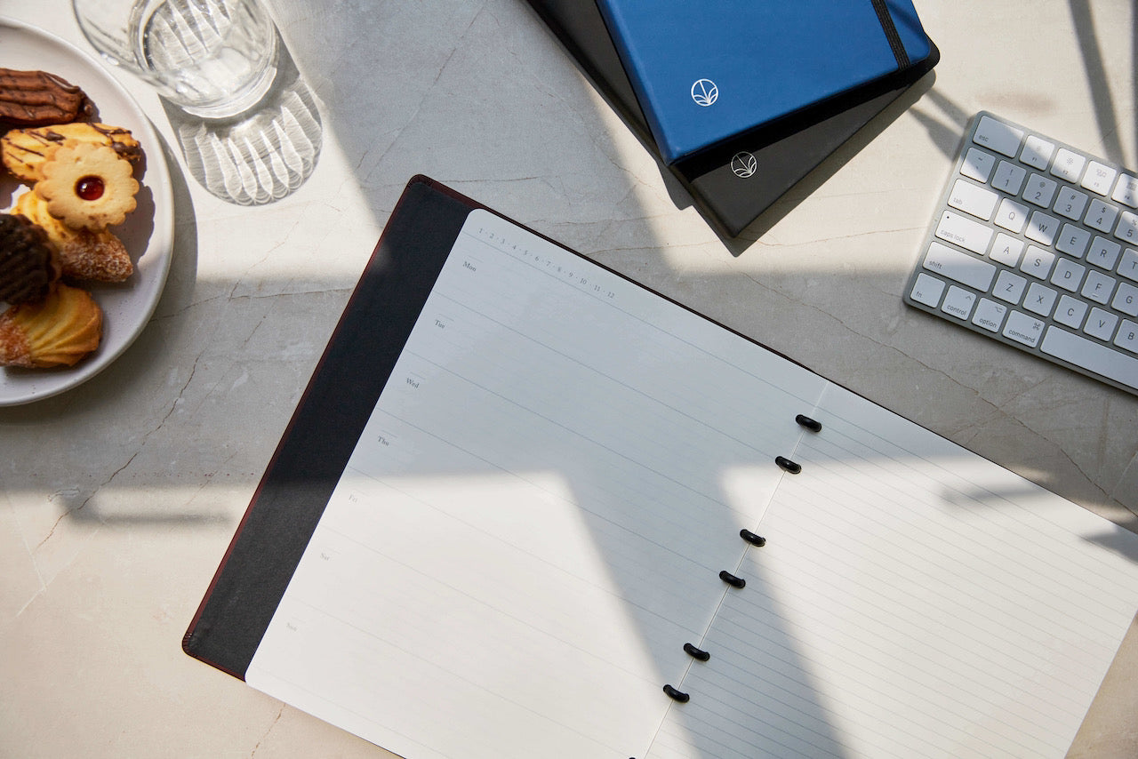 Thanks to its unique U-shaped binding, Minbøk is the only refillable notebook that lets you rearrange the contents of your notebook and still maintain the simple aesthetic look of a traditional notebook—unlike other discbound notebooks.